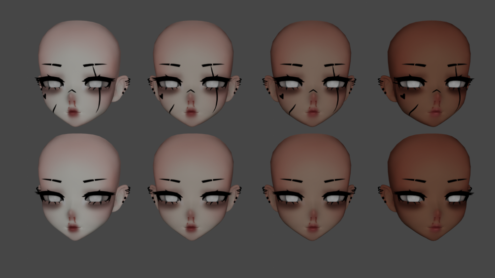➥ Includes 8 textures (4 skin colors, 4 pngs with tattoos, 4 pngs without tattoos) + eye emission and lip mask for glitter effect